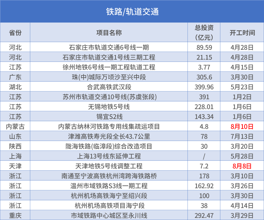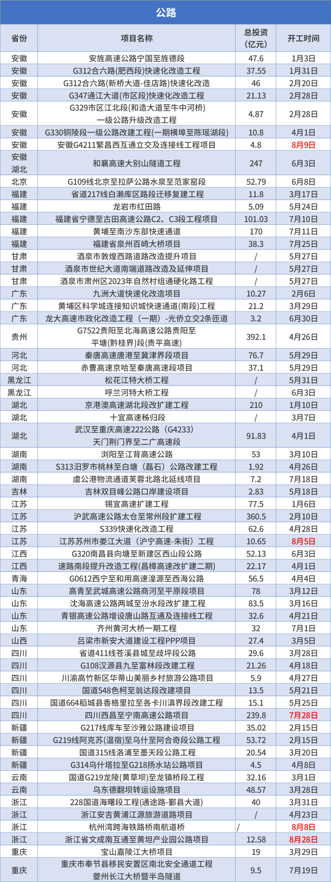 其中,新开工公路62条,总投资3202.41亿元;新开工铁路8条,轨道交通开工10条,共计2473.81亿元;水利水务项目新开工60个,总投资3936.73亿元;房建/市政类新开工项目1391个,总投资达16903.64亿元,主要为基础建设和城市开发更新项目;此外,机场项目8个,总投资约为153.58亿元;港航项目4个,总投资197.8亿元;其他项目共6371个,以高新技术项目和产业类项目为主,总投资30085.33亿元。