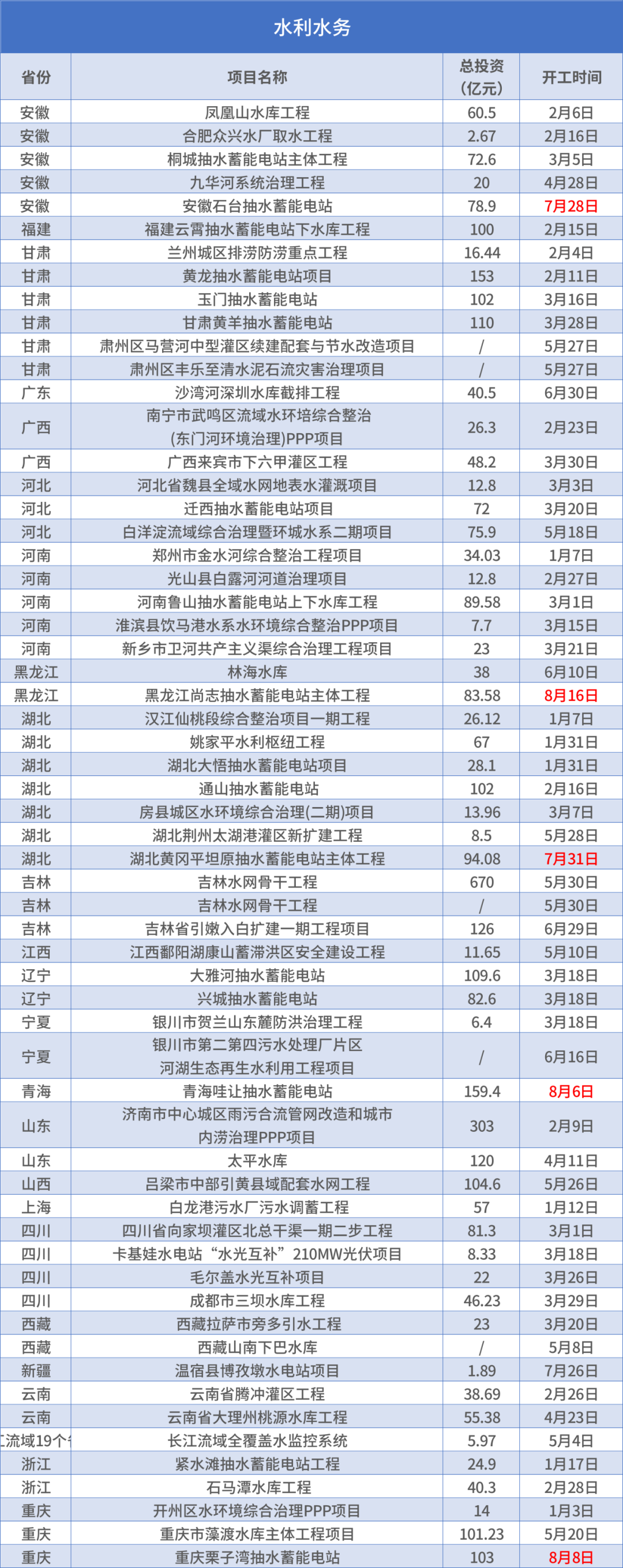 据国家统计局公布的数据显示,1—7月份,基础设施投资同比增长6.8%,增速比全部固定资产投资高3.4个百分点。其中,铁路运输业投资增长24.9%,水利管理业投资增长7.5%,道路运输业投资增长2.8%,公共设施管理业投资增长0.8%。