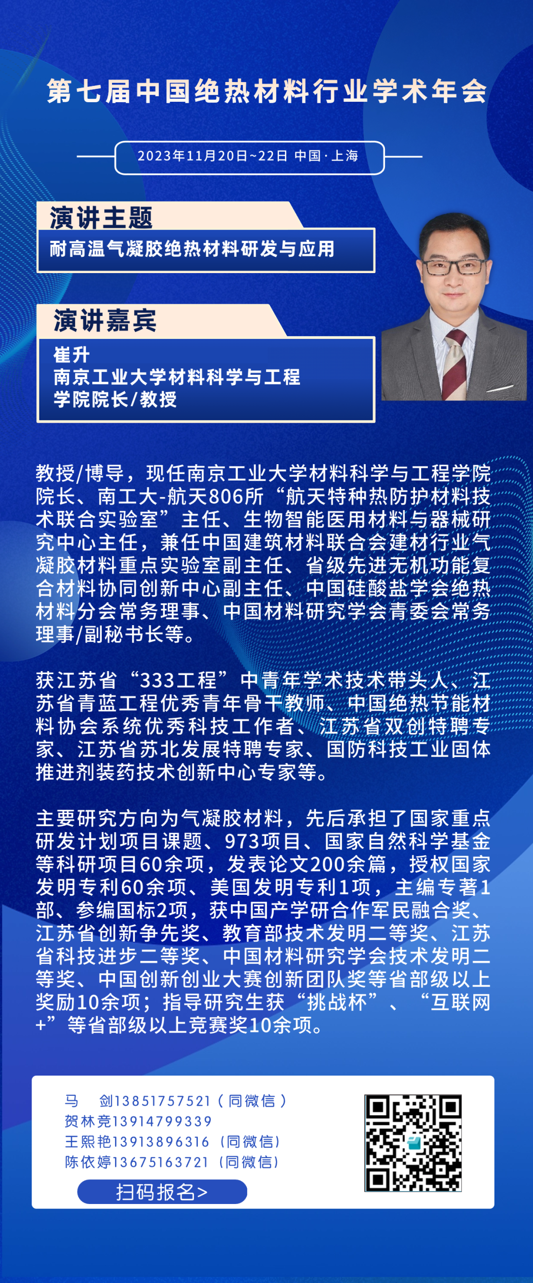 2023年是全面贯彻落实党的二十大精神的开局之年。党的二十大报告将推动经济社会发展绿色化、低碳化作为实现高质量发展的关键环节。绝热材料在国家节能减排、绿色发展进程中发挥着重要作用,这给绝热材料行业带来新的增长点。但现阶段我国经济发展放缓,绝热材料行业面临需求收缩、供给冲击的双重压力,为强化产业上下游协同创新,推动行业高端化、智能化、绿色化发展,提升供给质量、增强内生动力、激发应用活力,中国硅酸盐学会绝热材料分会兹定于2023年11月20日-11月22日在上海富悦大酒店围绕“携手向新 质领未来”主题召开“第七届中国绝热材料行业学术年会”,就当前形势下国内绝热材料行业的发展趋势、技术研究、创新应用等方面进行专题研讨交流,共同探索如何引领行业高质量发展,增强内需发展动力,开拓合作共赢的新局面。