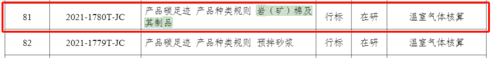 2.行标:《产品碳足迹 产品种类规则 岩(矿)棉及其制品》2021-1708T-JC