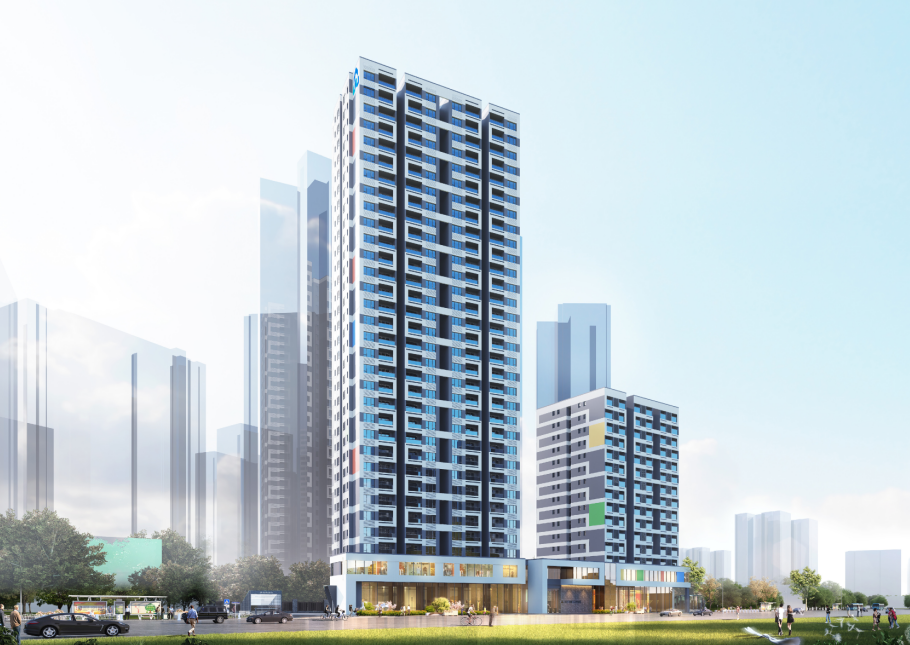 安居荟智苑项目位于深圳市龙华区观澜街道,南临景祥路,西临安清路,东临规划用地,北临佳华领域广场。建设单位为深圳市龙华人才安居有限公司,项目主要由一单元(共32层、裙房2层、高度98.35m)、二单元(共15层、裙房2层、高度 49.05m)两栋住宅楼组成,总用地面积为4555.14㎡,总建筑面积26476㎡,其中二单元面积为5077㎡。项目整体以绿色建筑二星级为建设目标,二单元单体执行超低能耗建设标准。