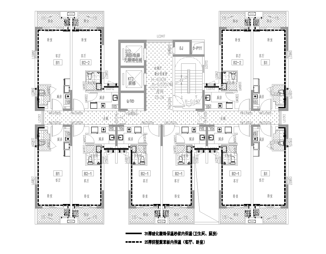 保温隔热设计方面,依据深圳气候特点适当加强外围护结构系统保温隔热设计,卧式客厅等空调房间采用35mm挤塑聚苯板,门窗采用断热铝合金窗框+双层中空LOW-E玻璃,增强空调时段外围护结构的隔热性能,降低室内外空间热量传递,减少围护结构能源消耗。
