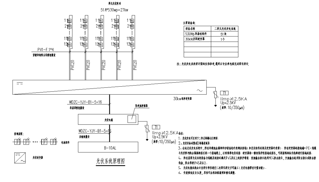 屋顶安装51块单晶硅标准组件,光伏铺装面积合计130.36平方米,单块光伏板发电功率为530W,总光伏装机容量约27kW,光伏系统年累计发电量约20000kwh。光伏发电主要用于公区照明、动力设备用电等。