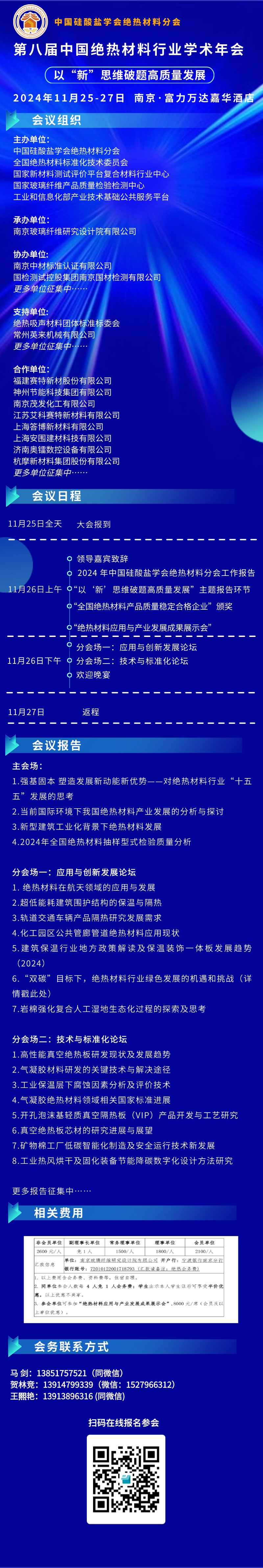 本次报告主要介绍轻质VIP专用芯材的泡沫芯材结构与传热机理、真空环境下隔热性能工艺研究(包括开孔率、泡孔尺寸对隔热性能影响、产品可靠性研究)、产品性能指标及应用前景展望等。