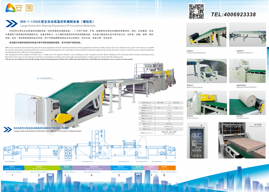 安围建材通过多年的创新研究与实践,发明创造了多种适用于建筑节能和工业保温节能的产品和生产设备。公司的核心产品有全自动缝毡智能流水线,缝毡机产品经过十多年研发及应用,已与国内外几十家知名岩棉企业配套供应,得到相关合作单位的认可和好评。网织增强岩棉板(简称“安围板”),适用于新建、扩建和改建的民用建筑、工业建筑以及既有民用建筑的节能改造,可应用于外墙外保温系统、内保温系统、屋面保温系统、保温装饰一体板系统、装配式建筑保温系统、建筑内部装饰装修吸音、隔声系统等各种领域。